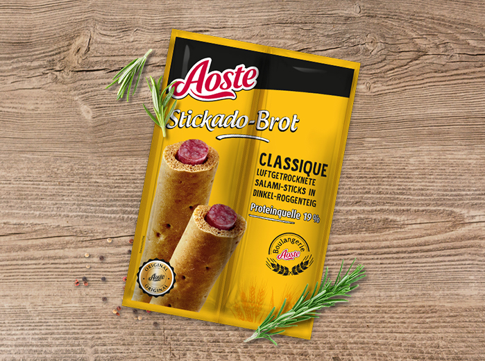 Minisalami 48% (Schweinefleisch, Speck, jodiertes Nitritpökelsalz [Kochsalz, Kaliumjodat, Konservierungsstoff: Natriumnitrit], Dextrose, Gewürze, Antioxidationsmittel: Natriumascorbat, Starterkulturen) 30% Dinkel und 2 % Roggen bezogen auf das Gesamtprodukt