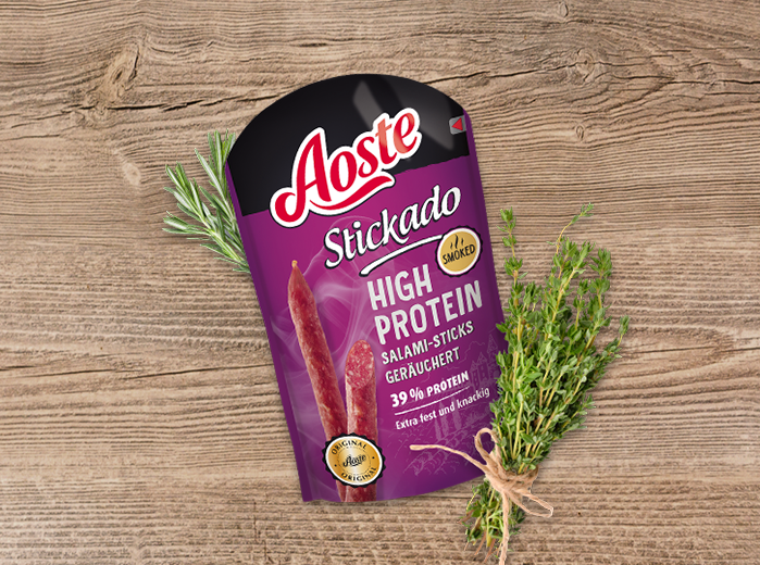 Die Aoste High Protein Smoked werden über Buchenholz herzhaft geräuchert und anschließend mit viel Sorgfalt luftgetrocknet. So erhalten sie ihren aromatischen Geschmack und die etwas härtere Konsistenz.